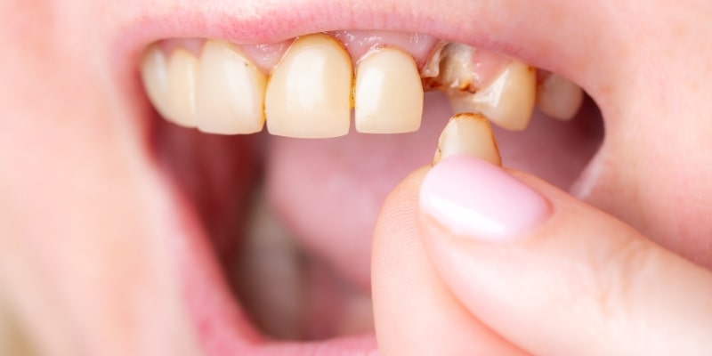 Common during eating or accidents.